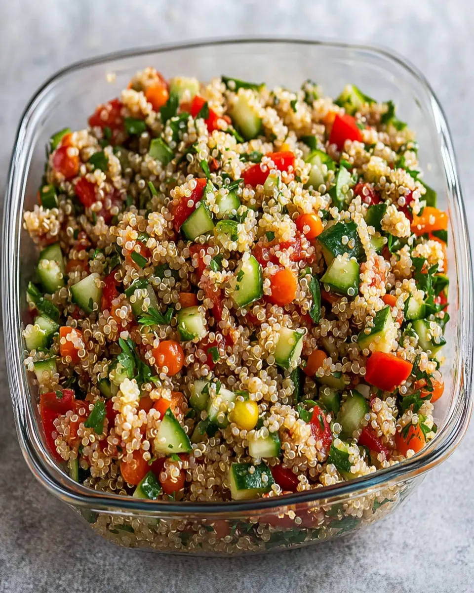 Prepare your ingredients in just 15 minutes. This includes cooking the quinoa and chopping the vegetables, ensuring everything is fresh and ready to mix.