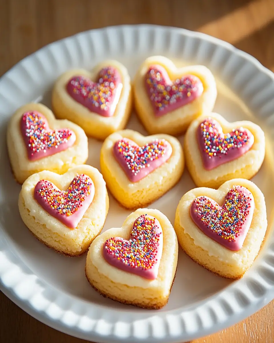 These heart-shaped butter cookies are irresistibly delightful, perfect for any occasion.